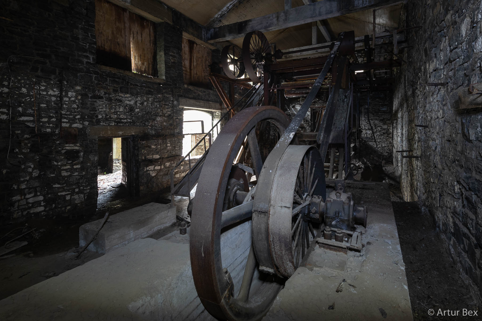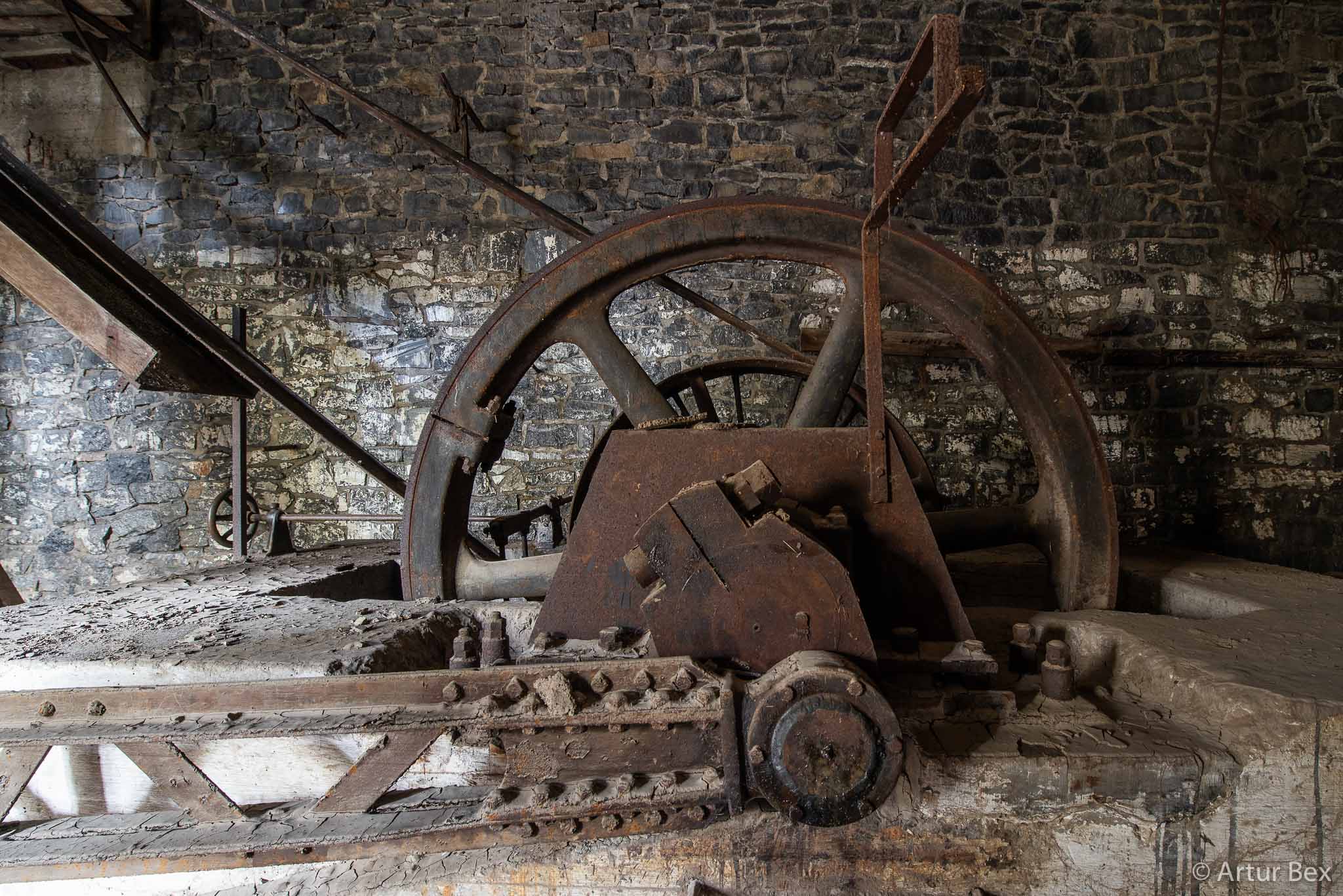 Nog maar een locatie die leuk meegenomen was als je in de buurt was maar voor de rest niet meer zo veel betekende. Het wiel en installatie blijven wel tof om zien natuurlijk maar er was ook maar dat. Toen we toekwamen keken we door een raampje en gingen we weer aan een heldhaftige klim beginnen om bij het wiel te geraken maar ergens was er toch een stemmetje die ons weerhield en ons deed besluiten het eens van de andere zijde te bekijken. Goed dat we dit deden hoor want uiteindelijk bleek het gewoon een easy wandelingetje om er te geraken. Het ergste was dat je in wat slijk kon uitglijden.