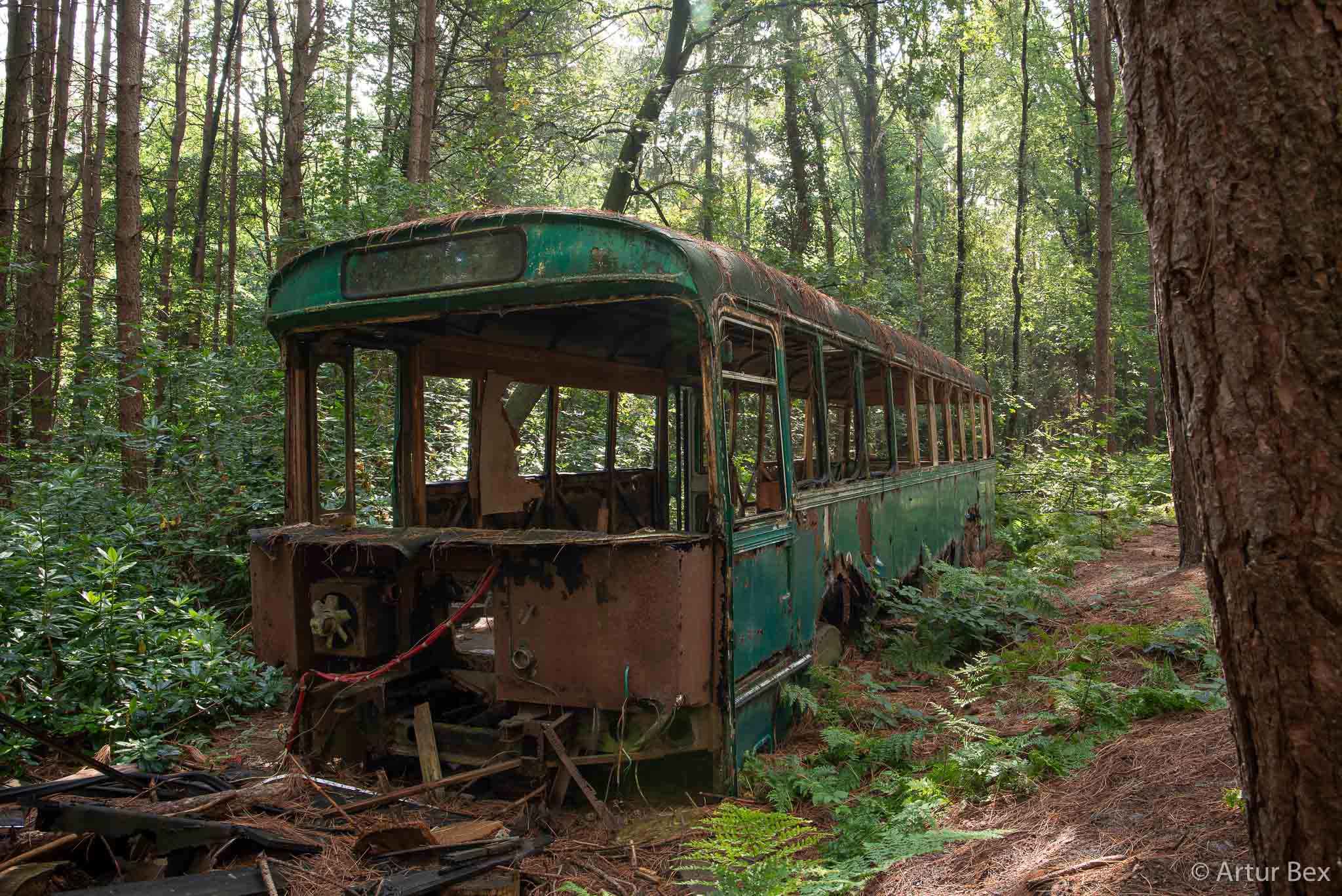 Er zijn van die vragen die je jezelf stelt en waar je geen antwoord op vindt. Is er een einde aan het heelal, is er leven na de dood, de kip of het ei of een bijna even belangrijke vraag (haha): Hoe komt een bus van dit kaliber zo maar midden in een bos terecht?